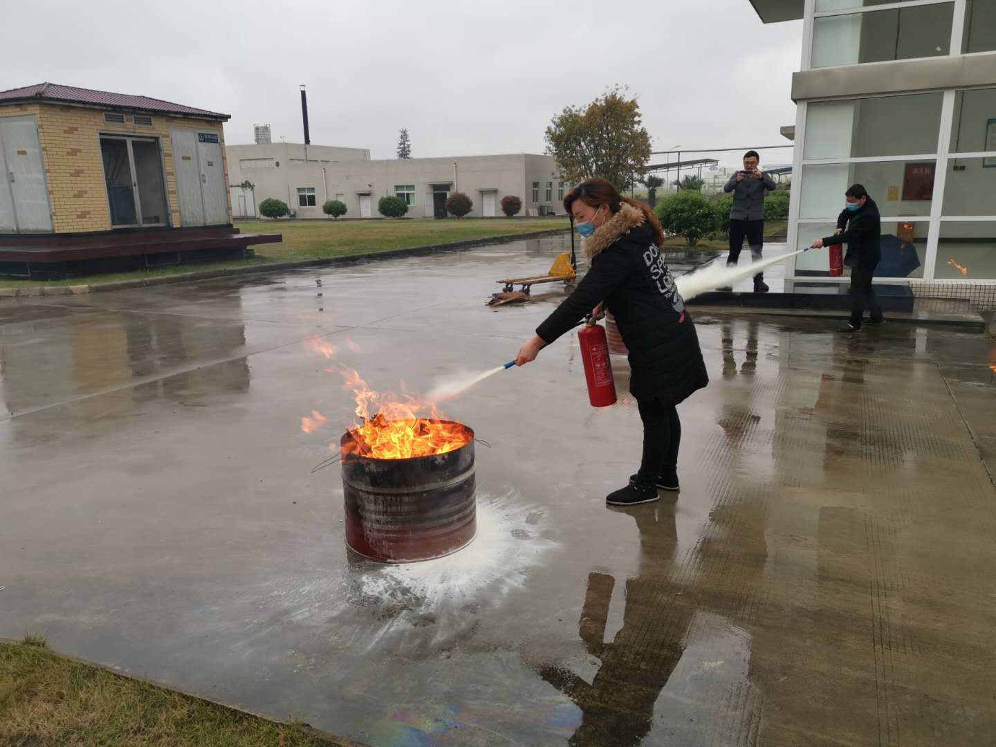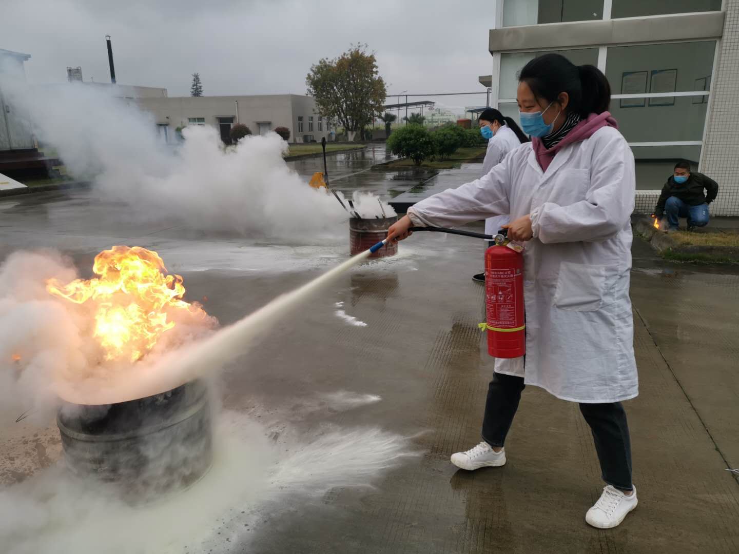 動(dòng)員結(jié)束后,全體人員在王鋒先生的帶領(lǐng)下,進(jìn)行了消防應(yīng)急疏散演練及干粉滅火器實(shí)際操作,模擬廠區(qū)火災(zāi)發(fā)生時(shí)相關(guān)消防應(yīng)急處置方法;模擬危險(xiǎn)廢物泄露等相關(guān)環(huán)保應(yīng)急處置方法。
